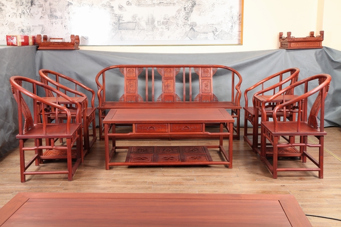 歲月流轉(zhuǎn),潮流更迭,唯藝術(shù)之美永恒。今天我們福林堂紅木要為大家介紹的這一款沙發(fā)——圈椅沙發(fā),它既屬圈椅一類,有著濃厚的文化內(nèi)涵賦予以及科學合理的結(jié)構(gòu)設(shè)計,又屬沙發(fā)之類別,結(jié)合了當代沙發(fā)座椅中設(shè)計的諸多優(yōu)點:舒適軟綿的坐墊鋪飾,外加高幾大平幾一張三人位長座椅之搭配更顯現(xiàn)出一股現(xiàn)代家具風格之獨特韻味,古典而又有著現(xiàn)代派家具風格之時尚之美。