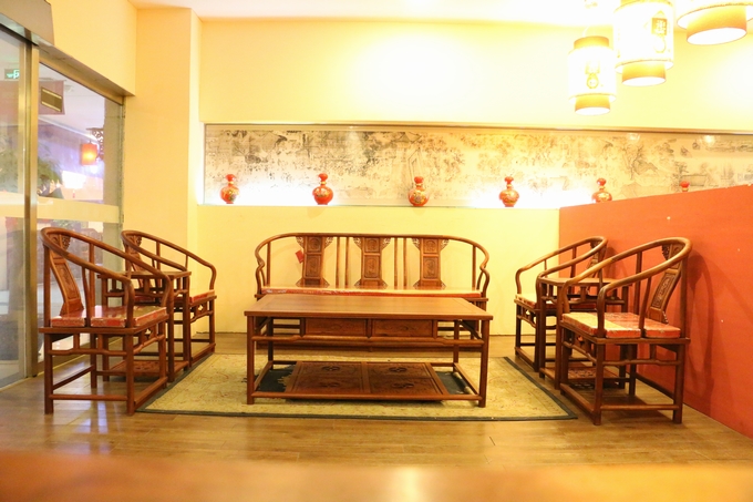 沙發(fā)整體的部件為:4張經(jīng)典圈椅(單人位)+ 1條長沙發(fā)(三人位)+ 1張大平幾 + 2條高幾組成,我們還是來看沙發(fā)的各處細節(jié)吧: